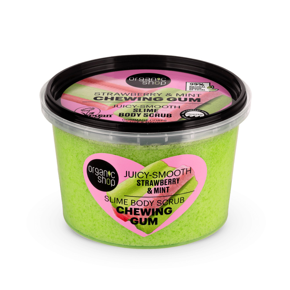 Szeretnél visszarepülni a gyerekkorod legédesebb pillanataihoz? Az Organic Shop legújabb dobása, a Rágógumi Slime testradír a klasszikus "bubble gum" illatot ötvözi a modern bőrápolással. Ez a nyúlós, rugalmas textúra nemcsak szórakoztató, de kíméletlenül elbánik a bőr érdességével, hogy helyette csak selymes puhaság maradjon. Ez a frissítően merész testradír zamatos eperkivonattal és hűsítő mentával ébreszti fel az érzékeidet. Ha a bőröd a nap végére fényvesztetté és fáradttá vált, ez a slime-különlegesség segít visszanyerni annak hamvas rugalmasságát. Az eper táplálja, a menta pedig kellemesen bizsergetve tonizálja a bőrfelszínt, így minden radírozás egyben egy kényeztető wellness-program is.